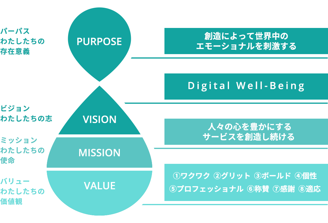 当社グループは、ビジョンに『Digital Well-Being』を掲げ、人々の心を豊かにするサービスを創造し続けることにより、中長期的な企業価値の向上を図り、持続的な成長の実現に向けて積極的な事業活動を推進してまいります。