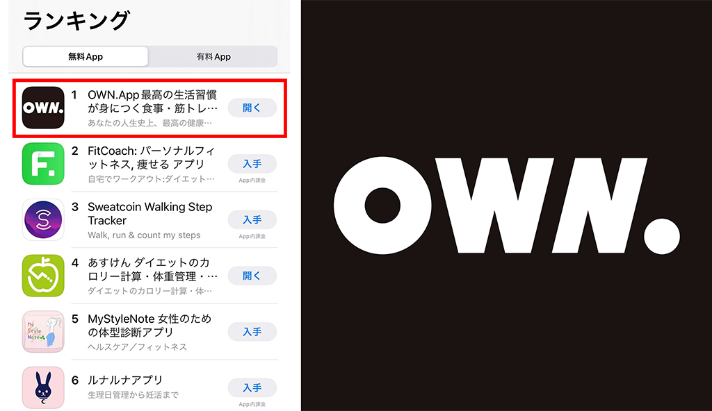 2022.05.17 お知らせTestosterone氏監修のヘルステックサービス「OWN.」がAppStore(無料ヘルスケア/フィットネス/国内)で1位に