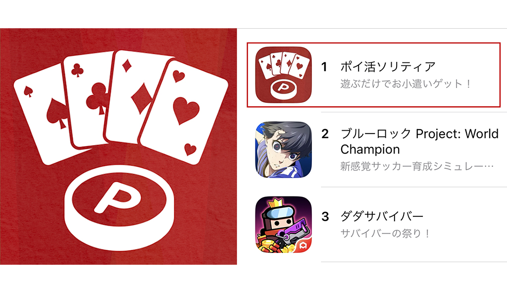 東京通信グループのMASKのインセンティブゲーム「ポイ活ソリティア」がApp Store(無料ゲーム)ランキングにて第1位に