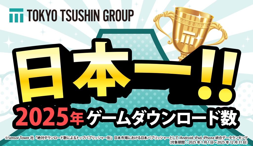 2026.01.19 お知らせ東京通信グループが日本市場における日本パブリッシャーとして2025年ゲームダウンロード数ランキングにて日本一を獲得|Sensor Tower社統計データ