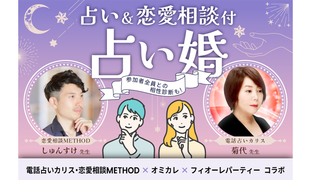 2024.05.21 お知らせ【婚活パーティーコラボ企画第1弾】『THE 的中王』出演の有名占い師も参戦!電話占いを手掛けるティファレトが、占い&恋愛相談付き婚活パーティーを開催!