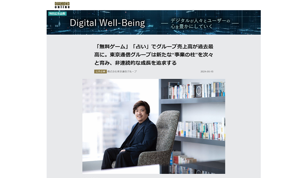 ダイヤモンド・オンラインにタイアップ記事を掲載中 | 「無料ゲーム」「占い」でグループ売上高が過去最高に。東京通信グループは新たな“事業の柱”を次々と育み、非連続的な成長を追求する